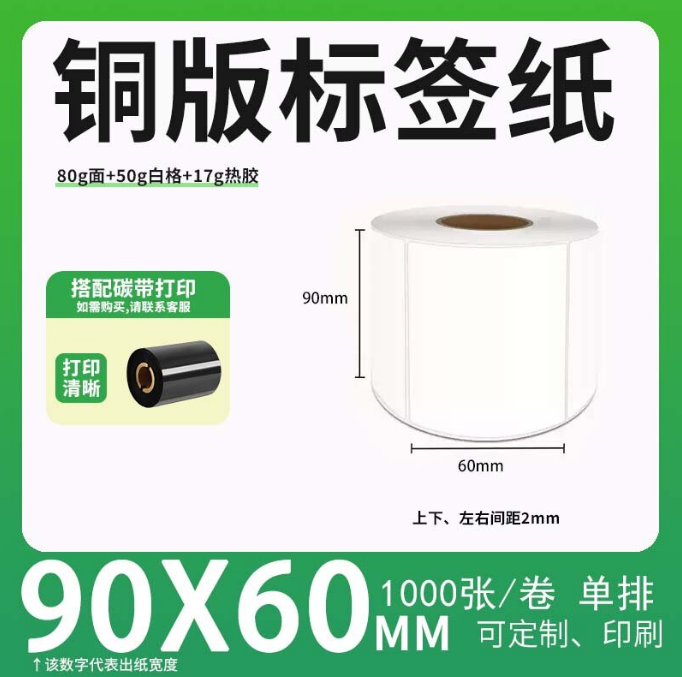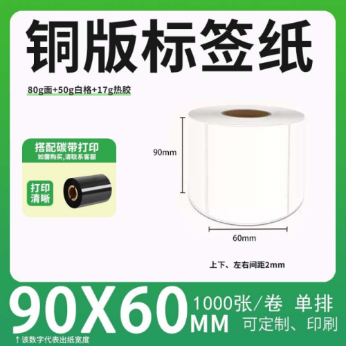不干胶 铜版标签 空白铜版标签 白格铜版纸不干胶带裂线 90*60*1000枚/卷(单排) 货 号:KY000540