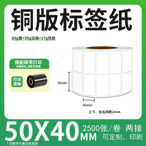 不干胶 铜版标签 空白铜版标签 白格铜版纸不干胶带裂线 50*40*2500枚/卷(2排) 货 号:KY000557