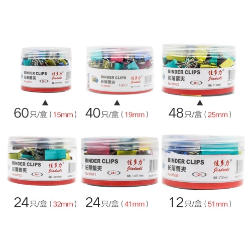 佳多力彩色/黑色长尾夹票夹 规格:3#32mm长尾夹 | 颜色:彩色/黑色 | 数量:24个/筒