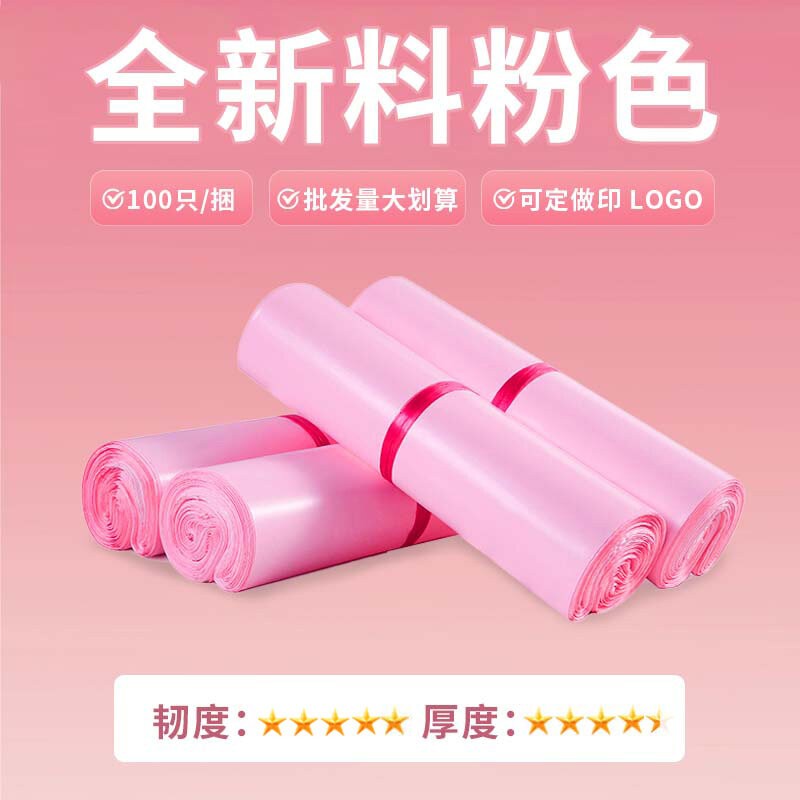 新料彩色快递袋 材质:新料粉红 | 产品尺寸(mm):250*310+40 | 包装数量:100个/捆