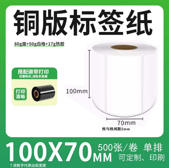 不干胶 铜版标签 空白铜版标签 白格铜版纸不干胶 100*70*500枚/卷(单排) 货 号:KY000594