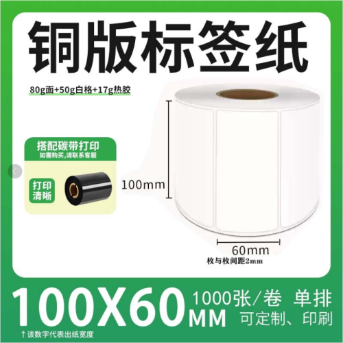 不干胶 铜版标签 空白铜版标签 白格铜版纸不干胶 100*60*1000枚/卷(单排)