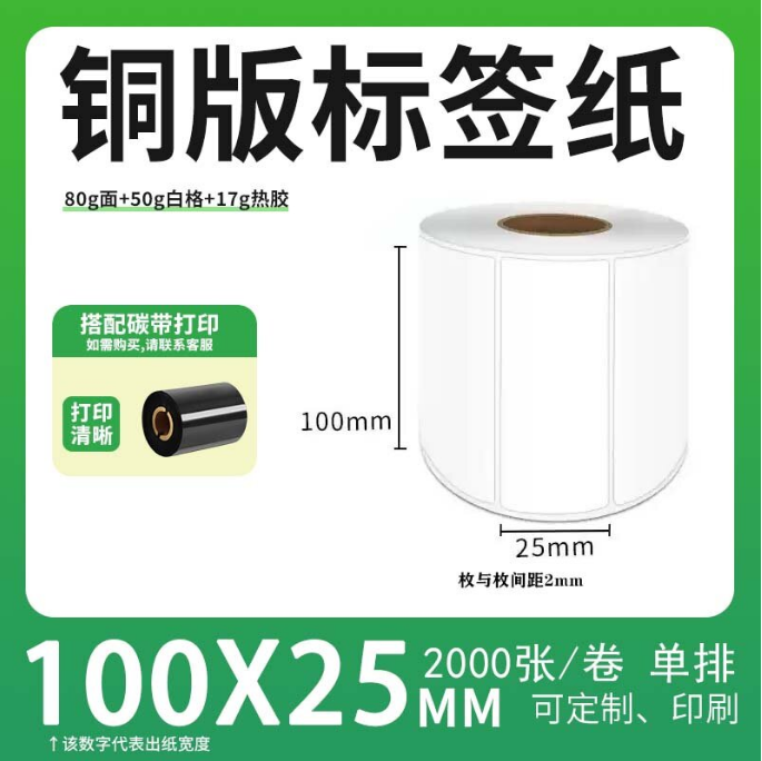 不干胶 铜版标签 空白铜版标签 白格铜版纸不干胶 100*25*2000枚/卷(单排)