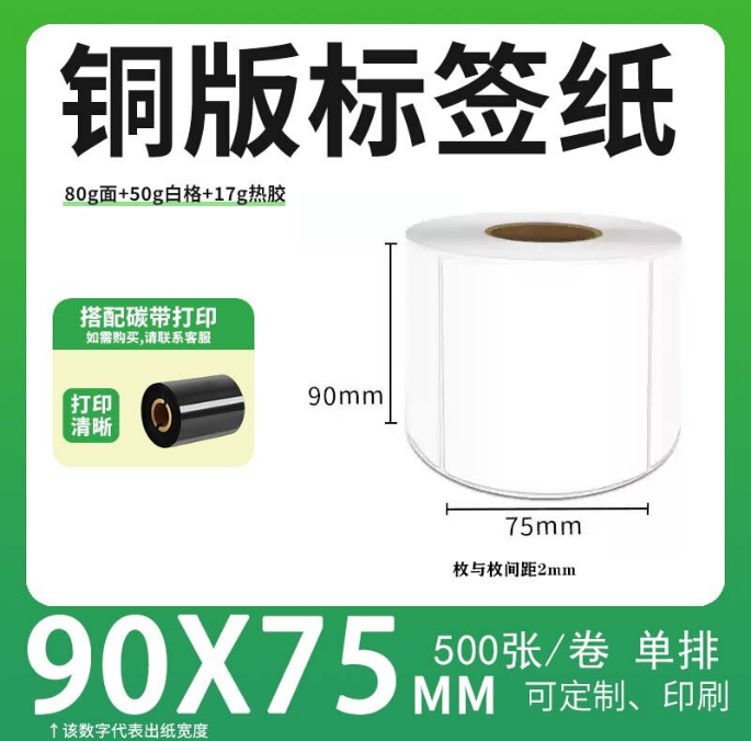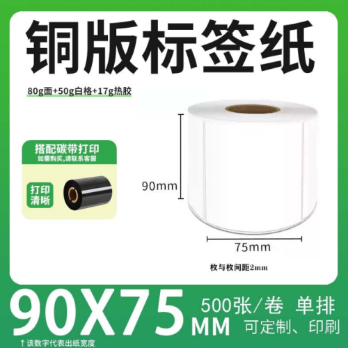 不干胶 铜版标签 空白铜版标签 白格铜版纸不干胶 90*75*500枚/卷(单排) 货 号:KY000612