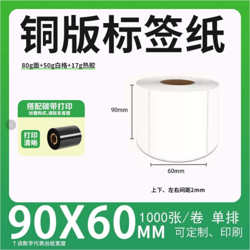 不干胶 铜版标签 空白铜版标签 白格铜版纸不干胶 90*60*1000枚/卷(单排)