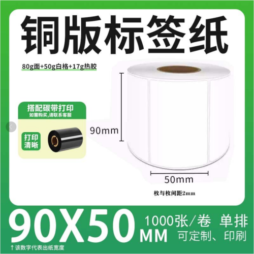 不干胶 铜版标签 空白铜版标签 白格铜版纸不干胶 90*50*1000枚/卷(单排)