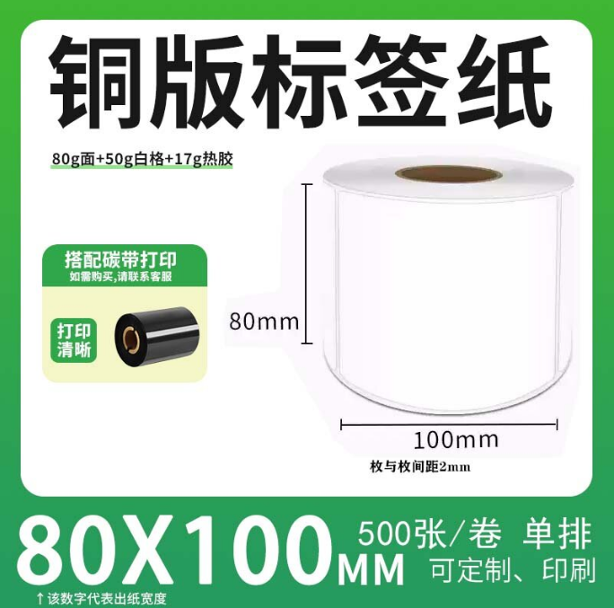 不干胶 铜版标签 空白铜版标签 白格铜版纸不干胶 80*100*500枚/卷(单排) 货 号:KY000631