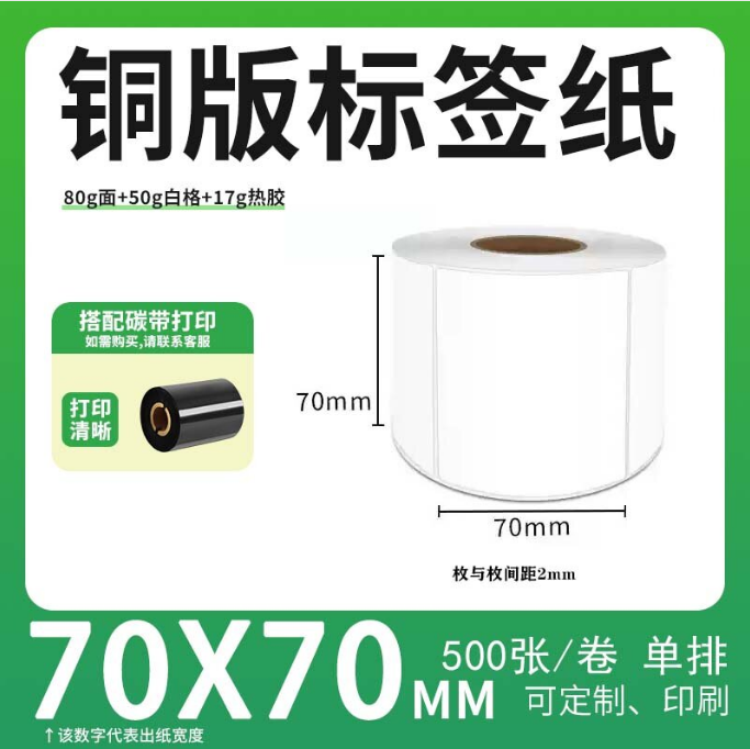不干胶 铜版标签 空白铜版标签 白格铜版纸不干胶 70*70*500枚/卷(单排) 货 号:KY000665