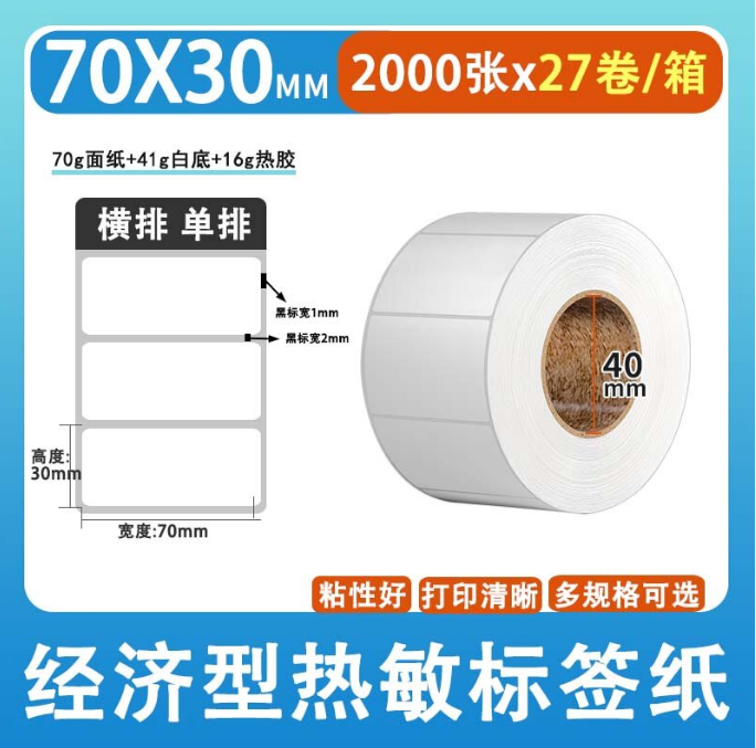不干胶 热敏标签 空白白格热敏标签 空白白格三防热敏不干胶 70*30*2000张/卷*27卷/箱