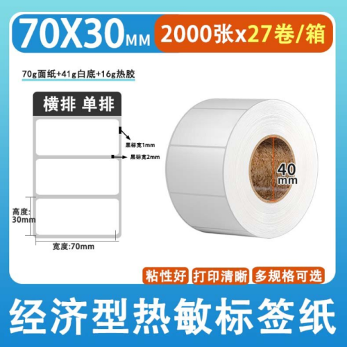 不干胶 热敏标签 空白白格热敏标签 空白白格三防热敏不干胶 70*30*2000张/卷*27卷/箱 货 号:KY000066
