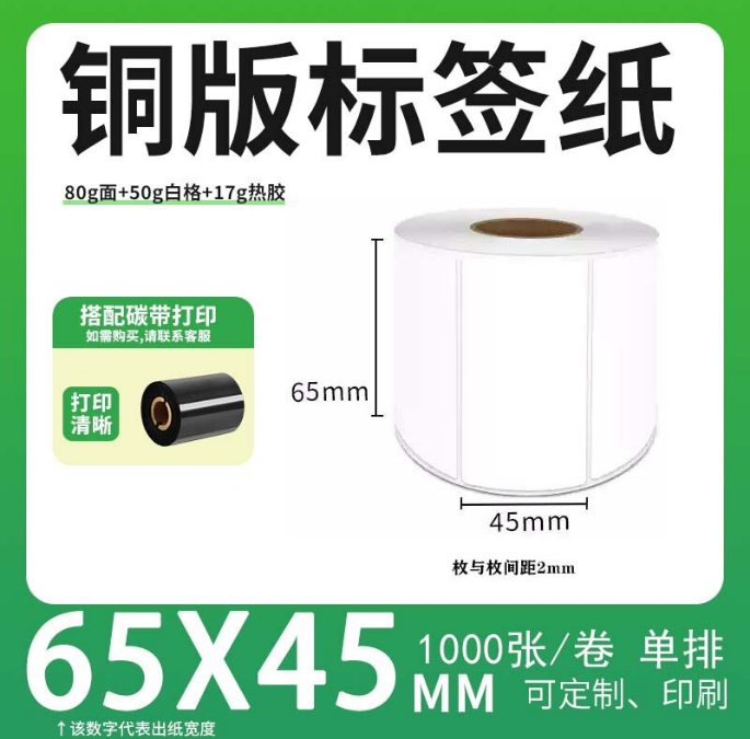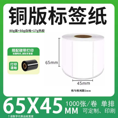 不干胶 铜版标签 空白铜版标签 白格铜版纸不干胶 65*45*1000枚/卷(单排)