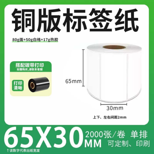 不干胶 铜版标签 空白铜版标签 白格铜版纸不干胶 65*30*2000枚/卷(单排)