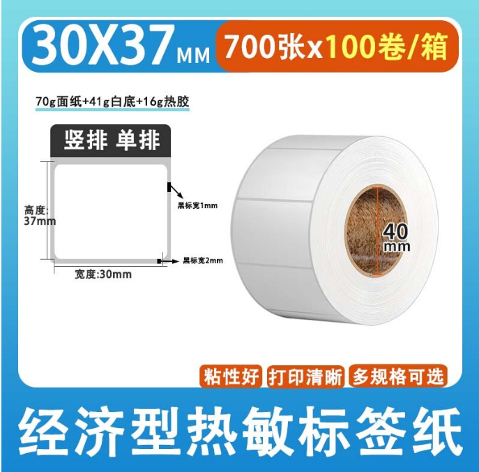 不干胶 热敏标签 空白白格热敏标签 空白白格三防热敏不干胶 30*37mm*700枚/卷*100卷/箱