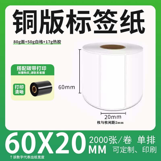 不干胶 铜版标签 空白铜版标签 白格铜版纸不干胶 60*20*2000枚/卷(单排) 货 号:KY000824