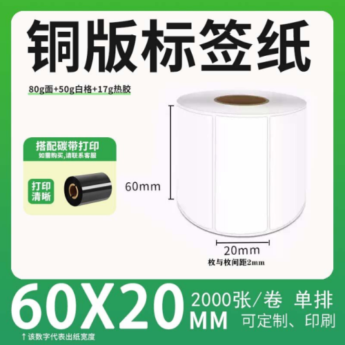 不干胶 铜版标签 空白铜版标签 白格铜版纸不干胶 60*20*2000枚/卷(单排)