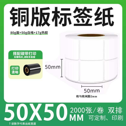 不干胶 铜版标签 空白铜版标签 白格铜版纸不干胶 50*50*2000枚/卷(2排) 货 号:KY000830