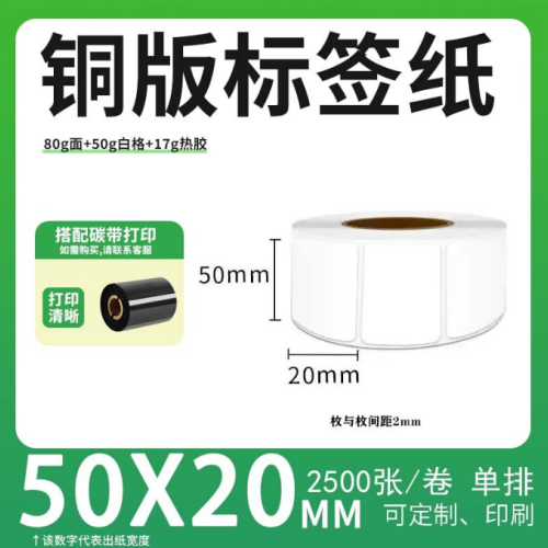 不干胶 铜版标签 空白铜版标签 白格铜版纸不干胶 50*20*2500枚/卷(单排)