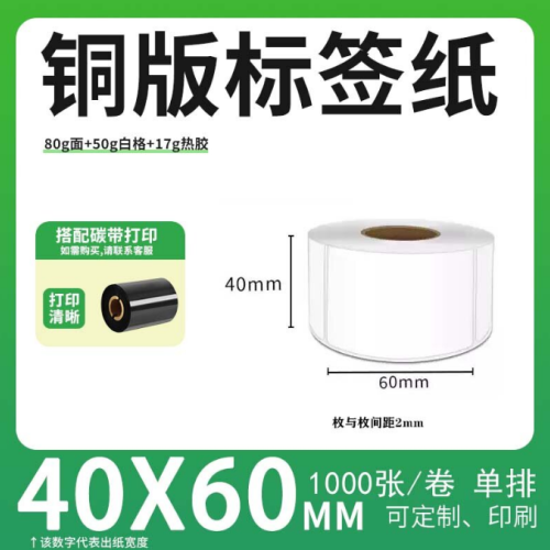 不干胶 铜版标签 空白铜版标签 白格铜版纸不干胶 40*60*1000枚/卷(单排) 货 号:KY000864