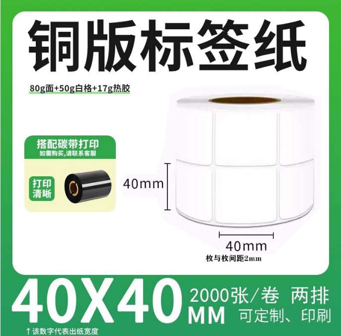 不干胶 铜版标签 空白铜版标签 白格铜版纸不干胶 40*40*2000枚/卷(2排) 货 号:KY000869