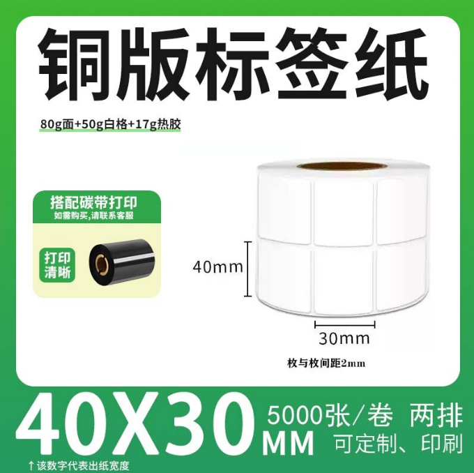 不干胶 铜版标签 空白铜版标签 白格铜版纸不干胶 40*30*5000枚/卷(2排) 货 号:KY000873
