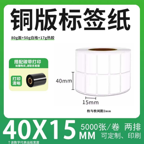 不干胶 铜版标签 空白铜版标签 白格铜版纸不干胶 40*15*5000枚/卷(2排)