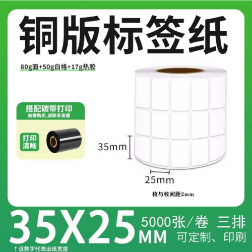 不干胶 铜版标签 空白铜版标签 白格铜版纸不干胶 35*25*5000枚/卷(3排)