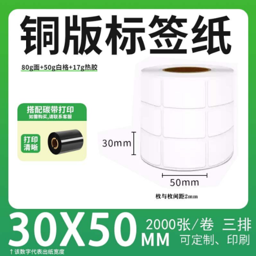 不干胶 铜版标签 空白铜版标签 白格铜版纸不干胶 30*50*2000枚/卷(3排)