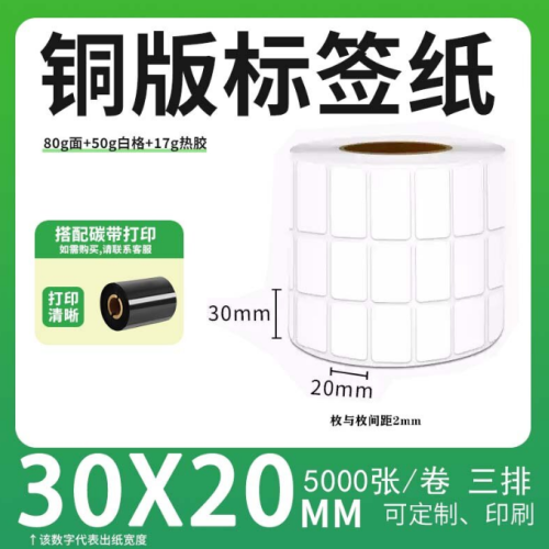 不干胶 铜版标签 空白铜版标签 白格铜版纸不干胶 30*20*5000枚/卷(3排) 货 号:KY000937