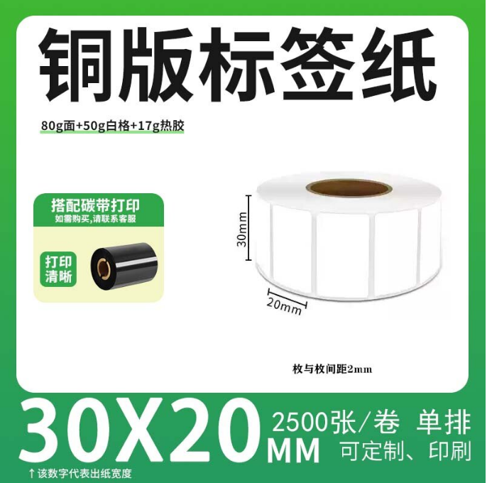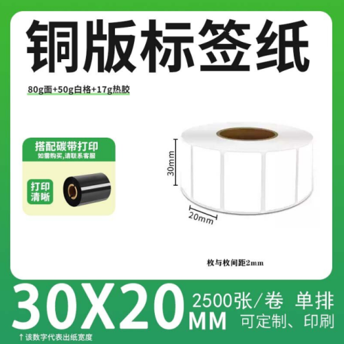 不干胶 铜版标签 空白铜版标签 白格铜版纸不干胶 30*20*2500枚/卷(单排) 货 号:KY000939