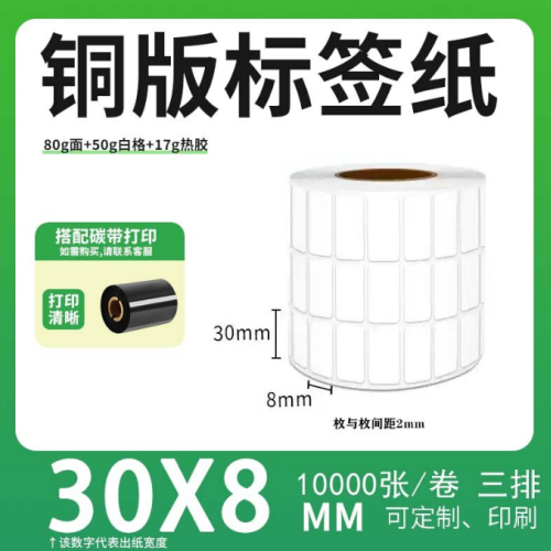 不干胶 铜版标签 空白铜版标签 白格铜版纸不干胶 30*8*10000枚/卷(3排) 货 号:KY000944