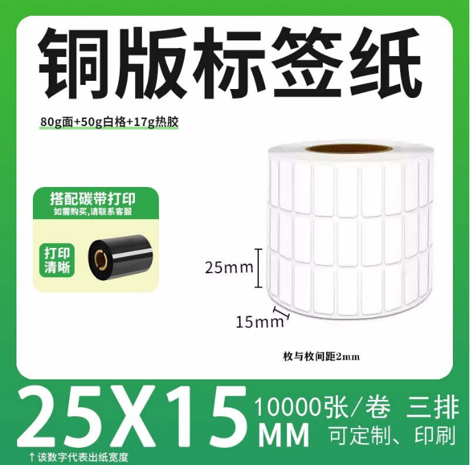 不干胶 铜版标签 空白铜版标签 白格铜版纸不干胶 25*15*10000枚/卷(3排)