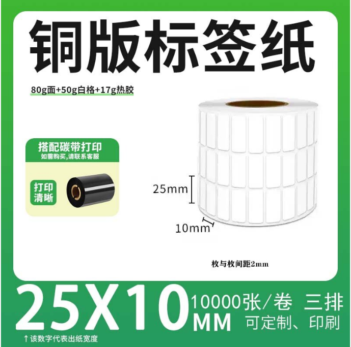 不干胶 铜版标签 空白铜版标签 白格铜版纸不干胶 25*10*10000枚/卷(3排) 货 号:KY000958