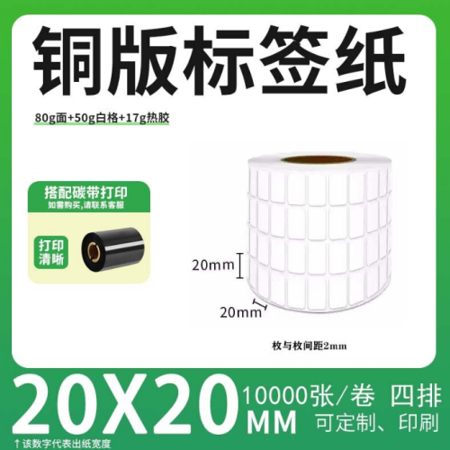 不干胶 铜版标签 空白铜版标签 白格铜版纸不干胶 20*20*10000枚/卷(4排) 货 号:KY000961