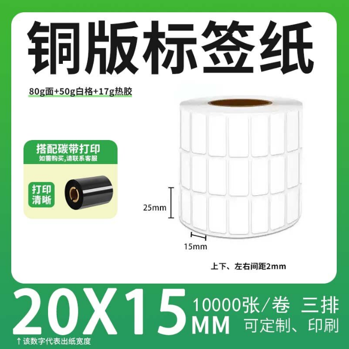 不干胶 铜版标签 空白铜版标签 白格铜版纸不干胶 20*15*10000枚/卷(3排) 货 号:KY000966