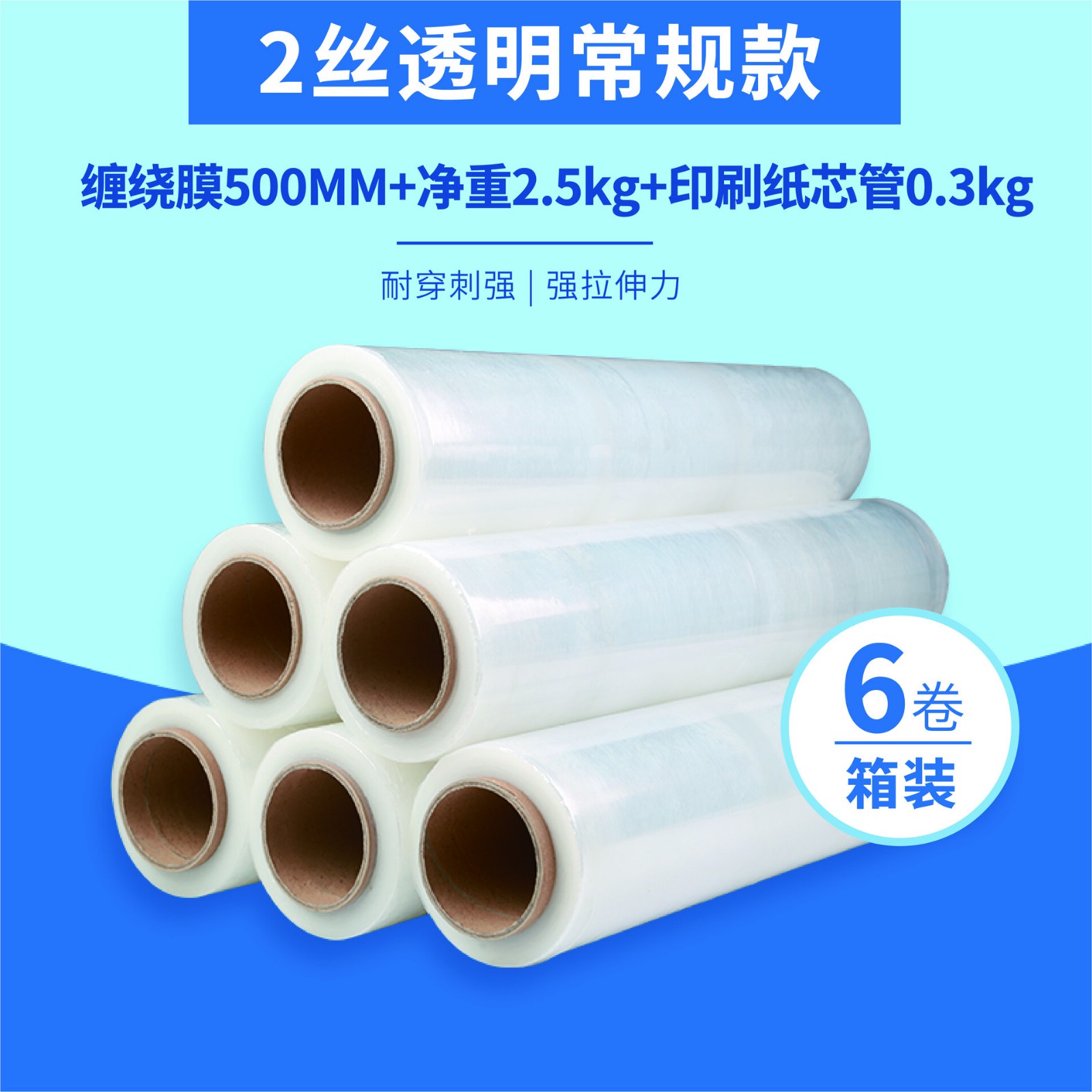 超厚缠绕膜/拉伸膜 足重 常规2丝*50cm*净重2.5kg+管芯0.3kg*6卷/----/6卷(整箱)