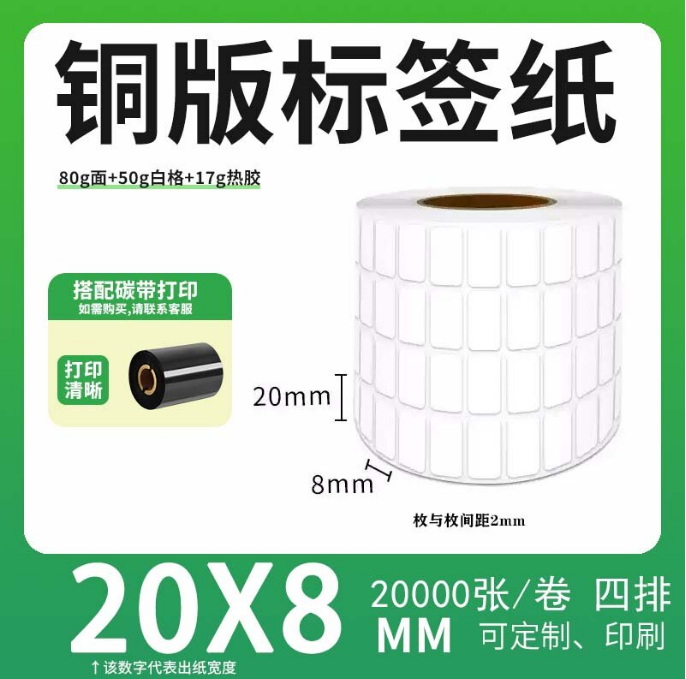 不干胶 铜版标签 空白铜版标签 白格铜版纸不干胶 20*8*20000枚/卷(4排) 货 号:KY000977